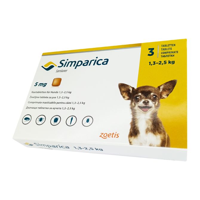 Симпарика для собак 5мг 1,3-2,5кг ГЕРМАНИЯ! таб. для пер. пр. N3